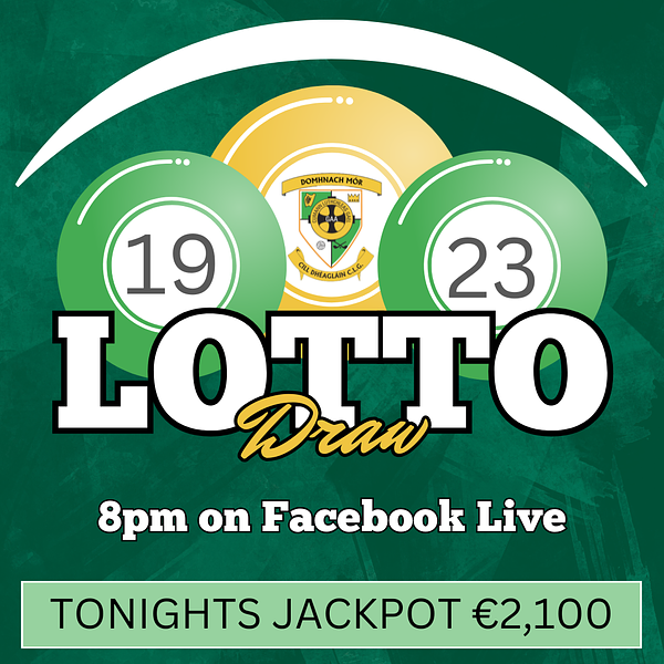 A chairde, ná déan dearmad ár lotto club a imirt roimh 8pm anocht. Tá €2,100 le buachan an tseachtain seo. The draw will be made on Facebook Live at 8pm!