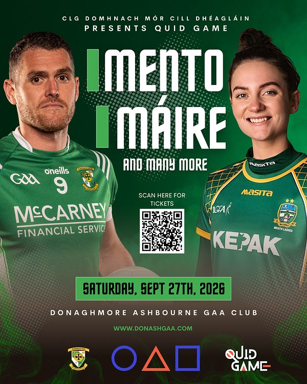 Don’t miss Bryan, Máire, and many other familiar faces take to the stage tomorrow evening as CLG Domhnach Mór Cill Dhéagláin presents Quid Game!