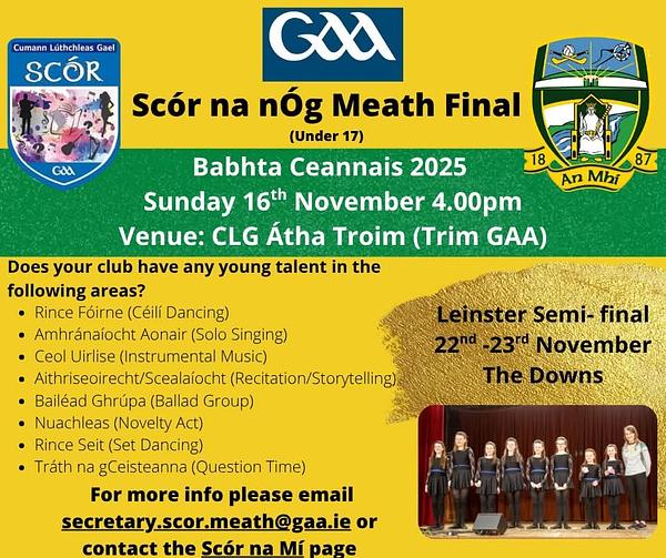 For more information secretary.scor.meath@gaa.ie or contact them on social media.